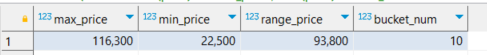 , width_bucket(price, min_price, max_price, bucket_num) AS width_bucket
