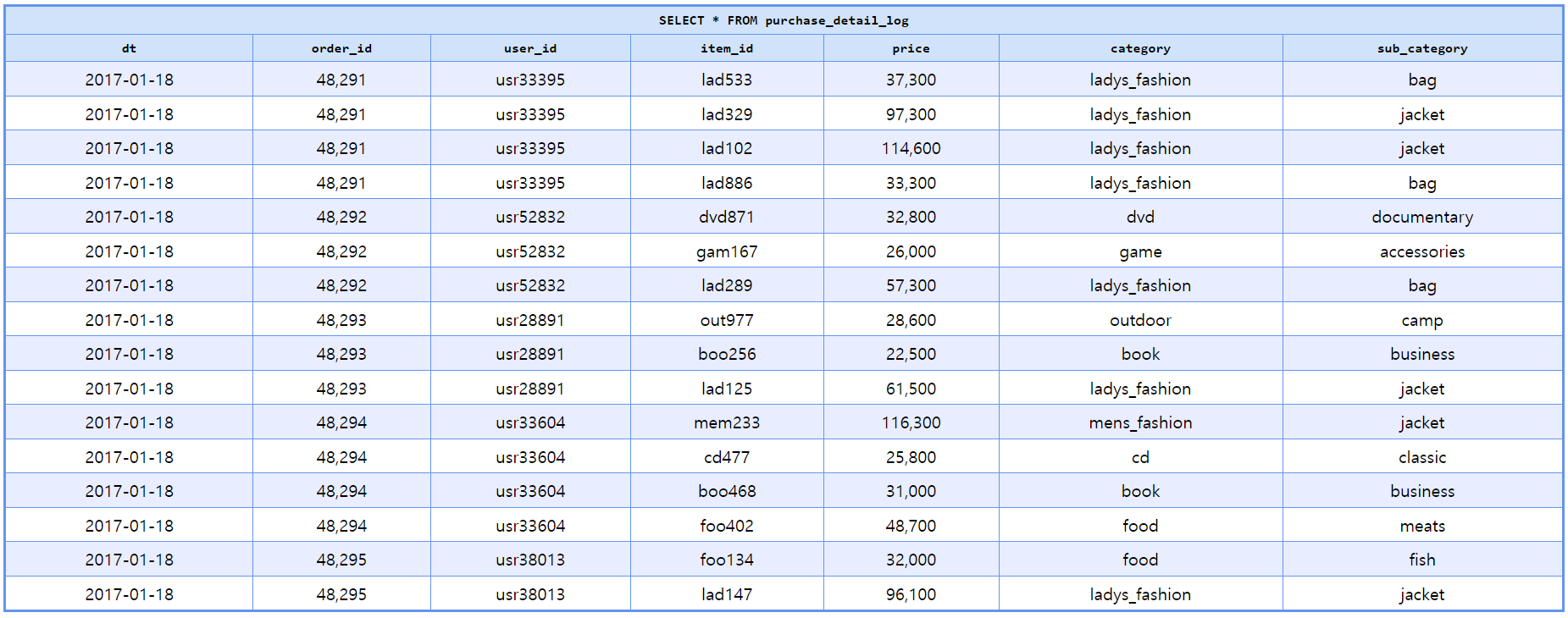 2014년부터 2015년까지 2년에 걸친 매출 데이터인 purchase_log테이블을 생성하는 쿼리